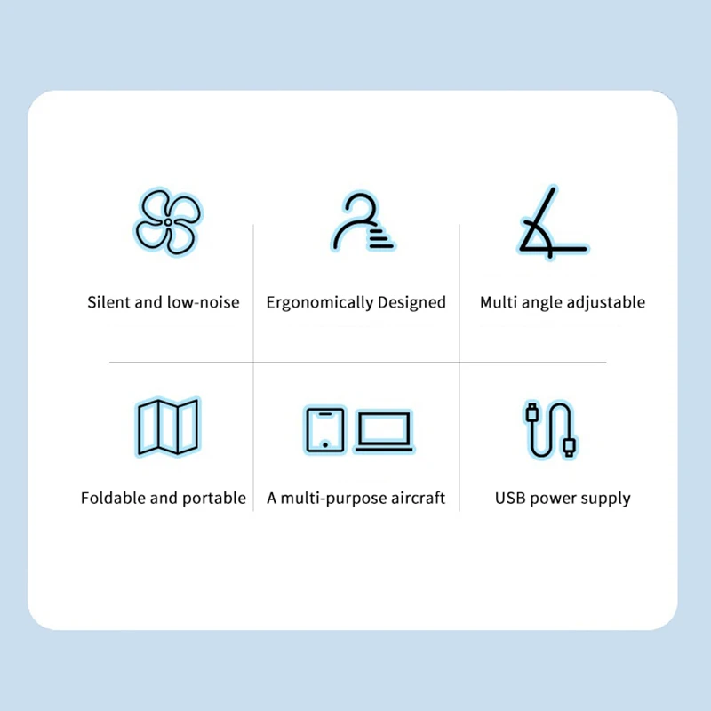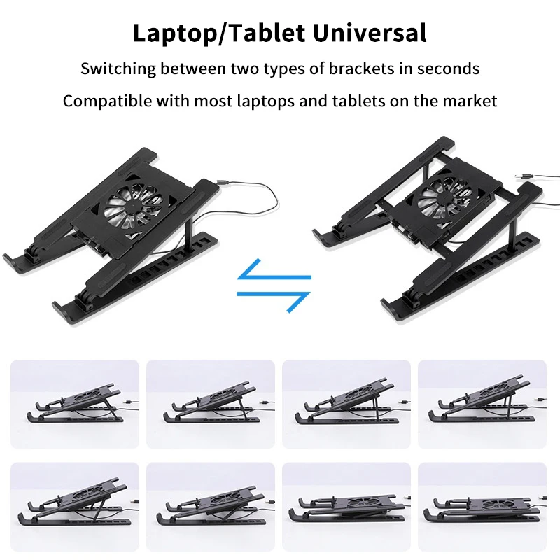 4.وظيفة الحامل: بالإضافة إلى وظيفة تبديد الحرارة، يمكن أيضًا استخدام القاعدة كحامل للكمبيوتر المحمول.سواء كنت في السرير، أو على الأريكة، أو على مكتبك، يمكنك تقديم دعم قوي.