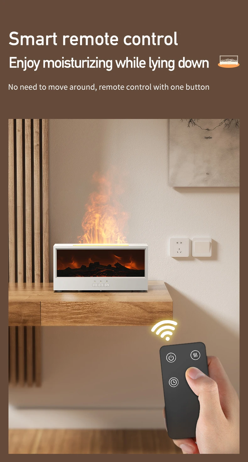 2. Realistic Visual Experience: Our simulated flame aromatherapy machine uses unique fireplace design and ultrasonic atomization technology to quickly convert water and essential oils into fine mist. The combination of mist, fireplace appearance, and lighting creates a realistic flame effect, adding warmth and vitality to your space.